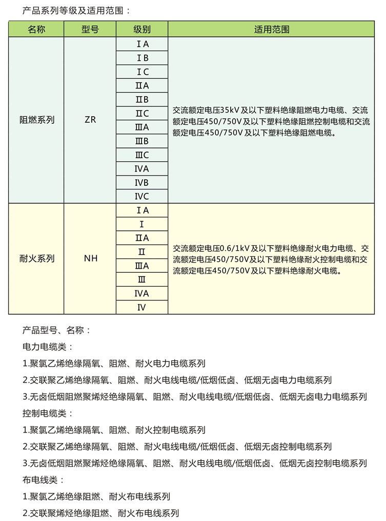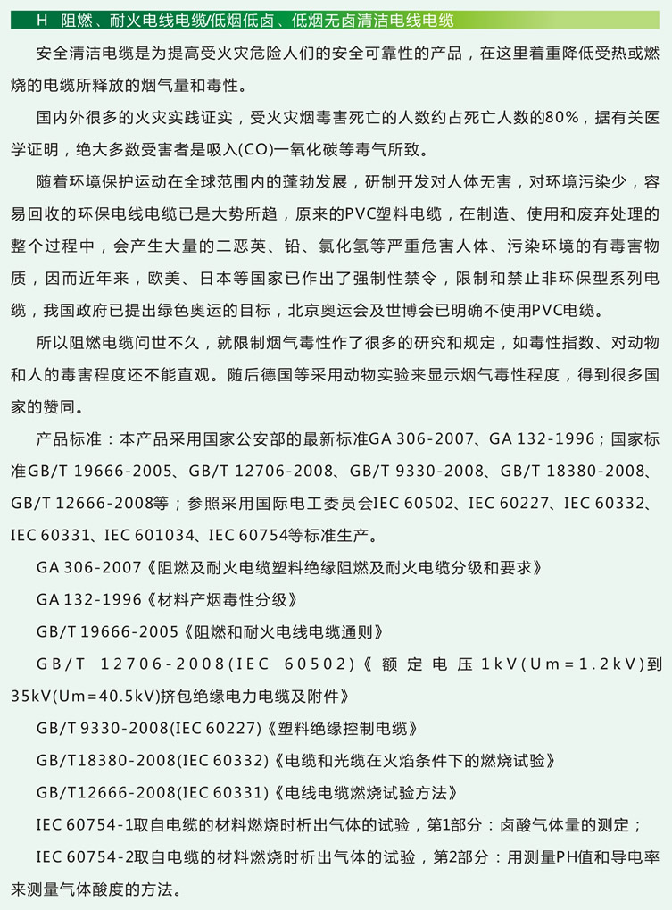 ● 阻燃、耐火電線電纜、低煙低鹵、低煙無鹵清潔電線電纜